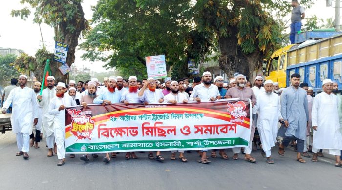 ২৮ অক্টোবর হত্যাকাণ্ডের প্রতিবাদে শার্শায় জামায়াতের বিক্ষোভ মিছিল মোঃ সজিদ হুসাইন ,যশোর জেলা প্রতিনিধি: ২০০৬ সালের ২৮ অক্টোবর রাজধানী ঢাকার পল্টনে আওয়ামী লীগের সন্ত্রাসীরা প্রকাশ্যে লগি-বৈঠা দিয়ে জামায়াত ও ইসলামী